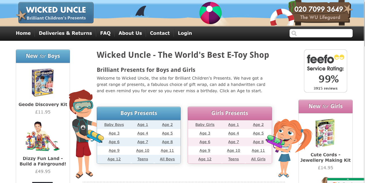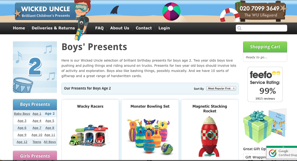 If I was to give the Wicked Uncle site one criticism it would be that not everyone wants to buy gender gifts. There’s no option to choose unisex gifts, for example for a baby that hasn’t been born yet and the parents don’t know the sex. If they were to add this category then I think their target customer would increase.