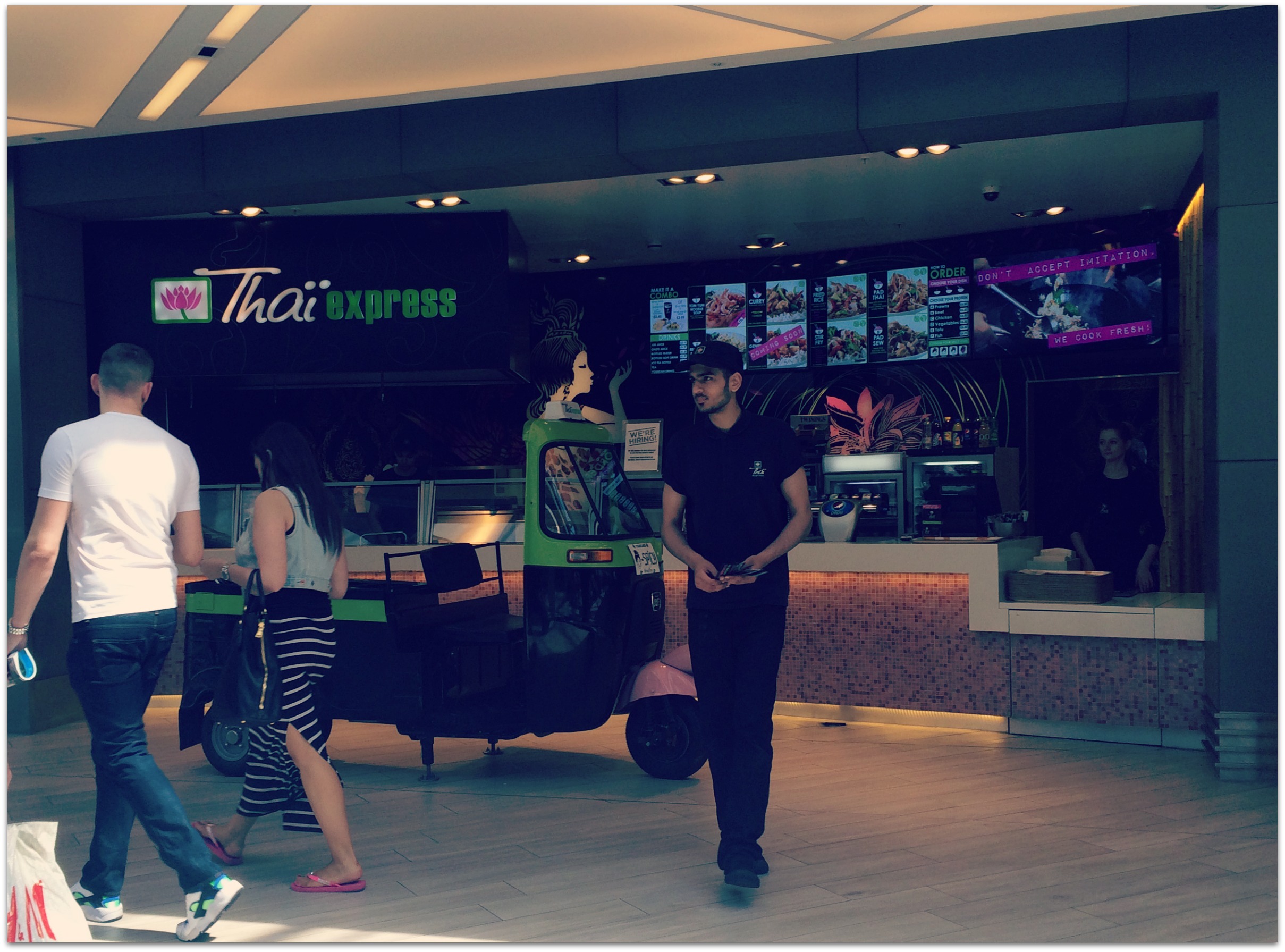 There are a variety of places to eat in the food court, but for me it was a no brainer. Thai Express. My husband and I both love Thai food (peanut satay is one of my faves). We visited a Thailand a few years ago and have loved the food ever since.