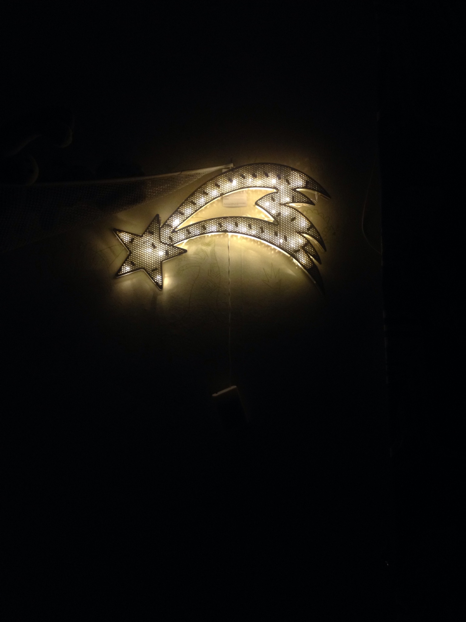 I think it looks fab as a wall light, and when we decide to put the Christmas decorations up, around 2 weeks before Christmas, we will move it into his bedroom window for the neighbours to see!