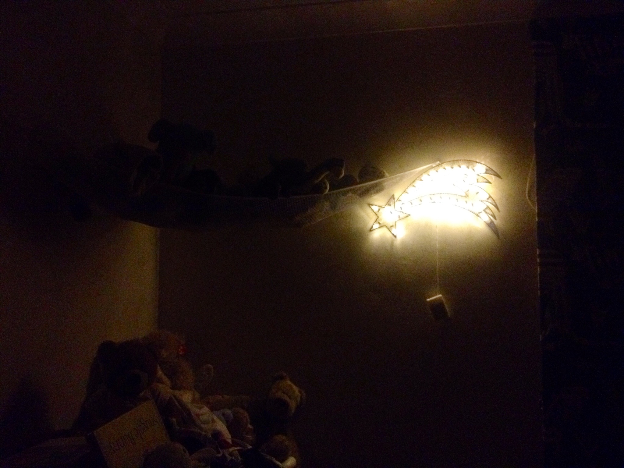 I don’t know if this is a good or bad thing, but the Christmas light arrived while I was at work so Daddy Lamb decided to open my parcel and put the light up himself. Being a little ditzy he thought the light was for Lambs bedroom (we are currently re organising it) and decided to hang it up in his room!