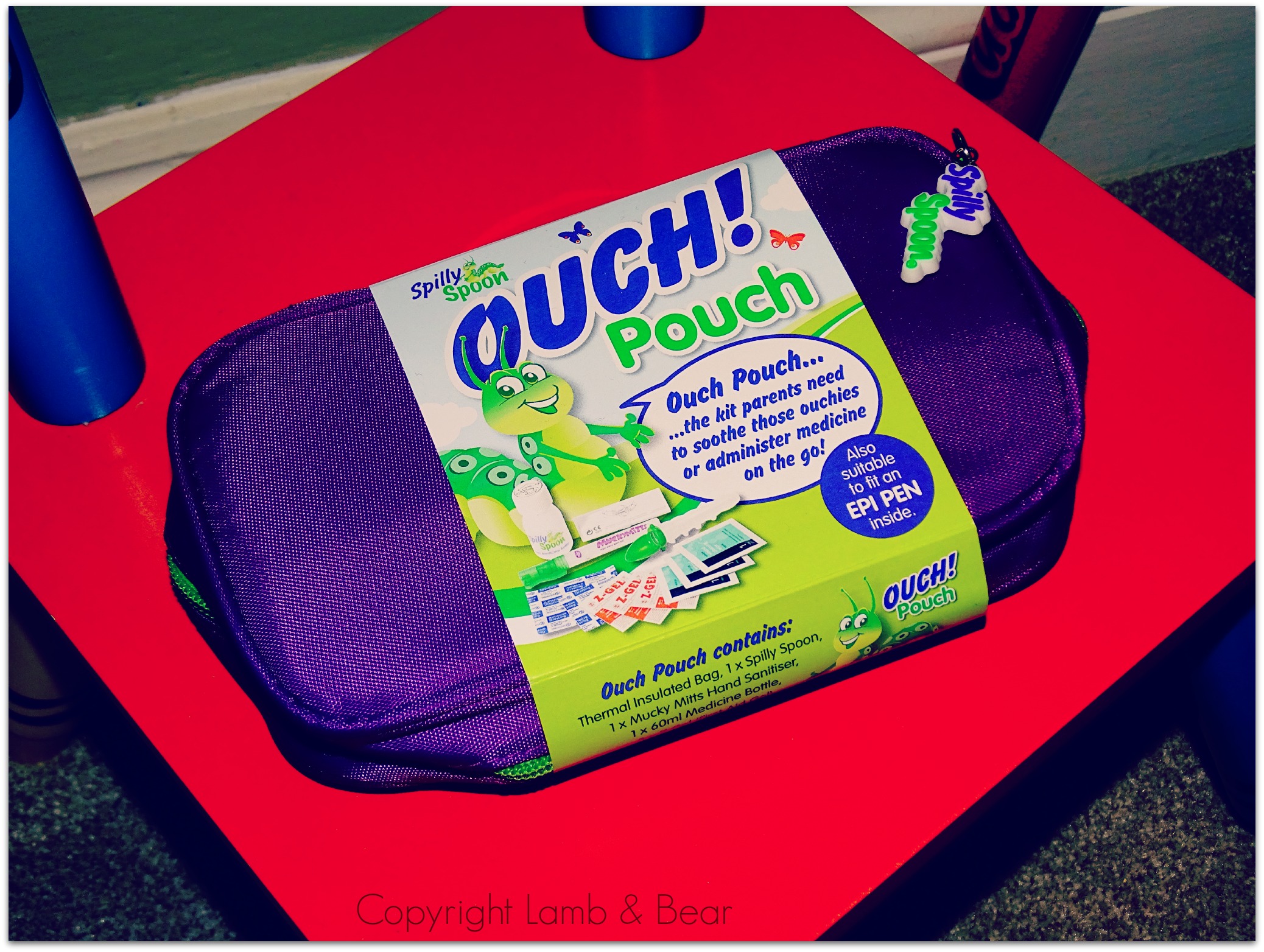 - SPILLY SPOON – the non-spill medicine spoon is an essential part of the Ouch Pouch as we all know administering medicine is a messy job whilst in our home, let alone in the middle of a packed flight!