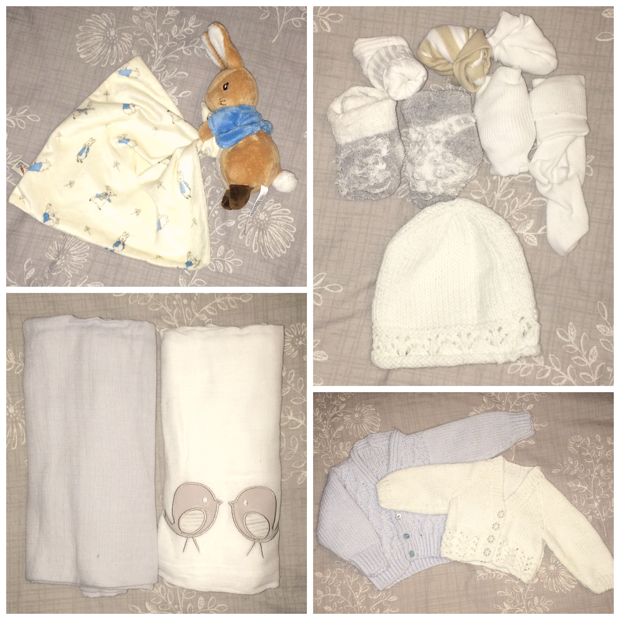 - Grey/white muslins swaddles are from toTs by SmarTrike.